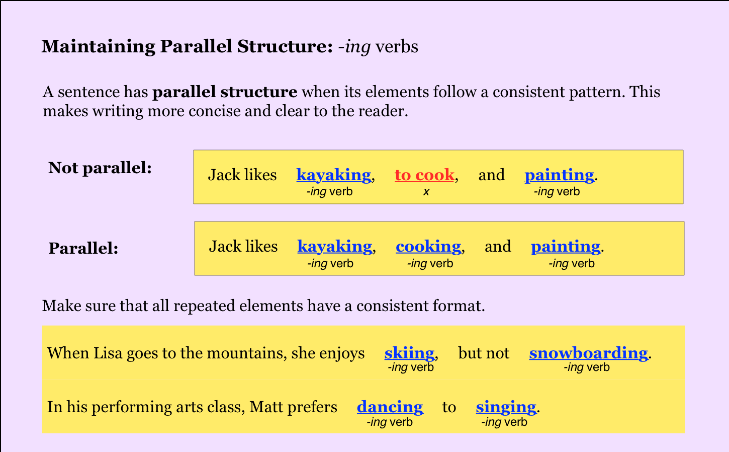 Concept Repetition and Parallel Structure (here) and (here) and (here)
