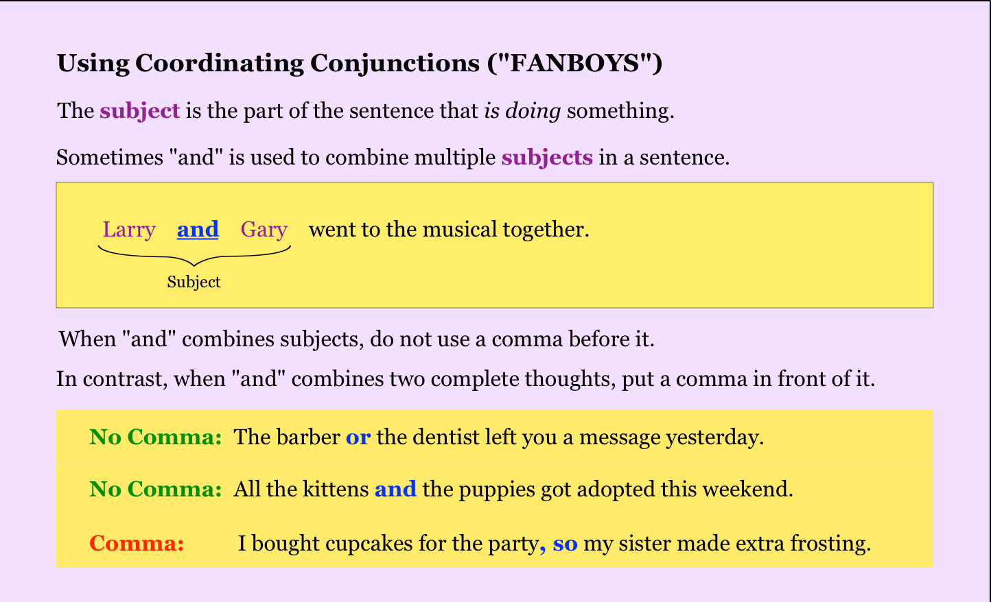Coordinating Conjunctions (FANBOYS) (here) and (here)